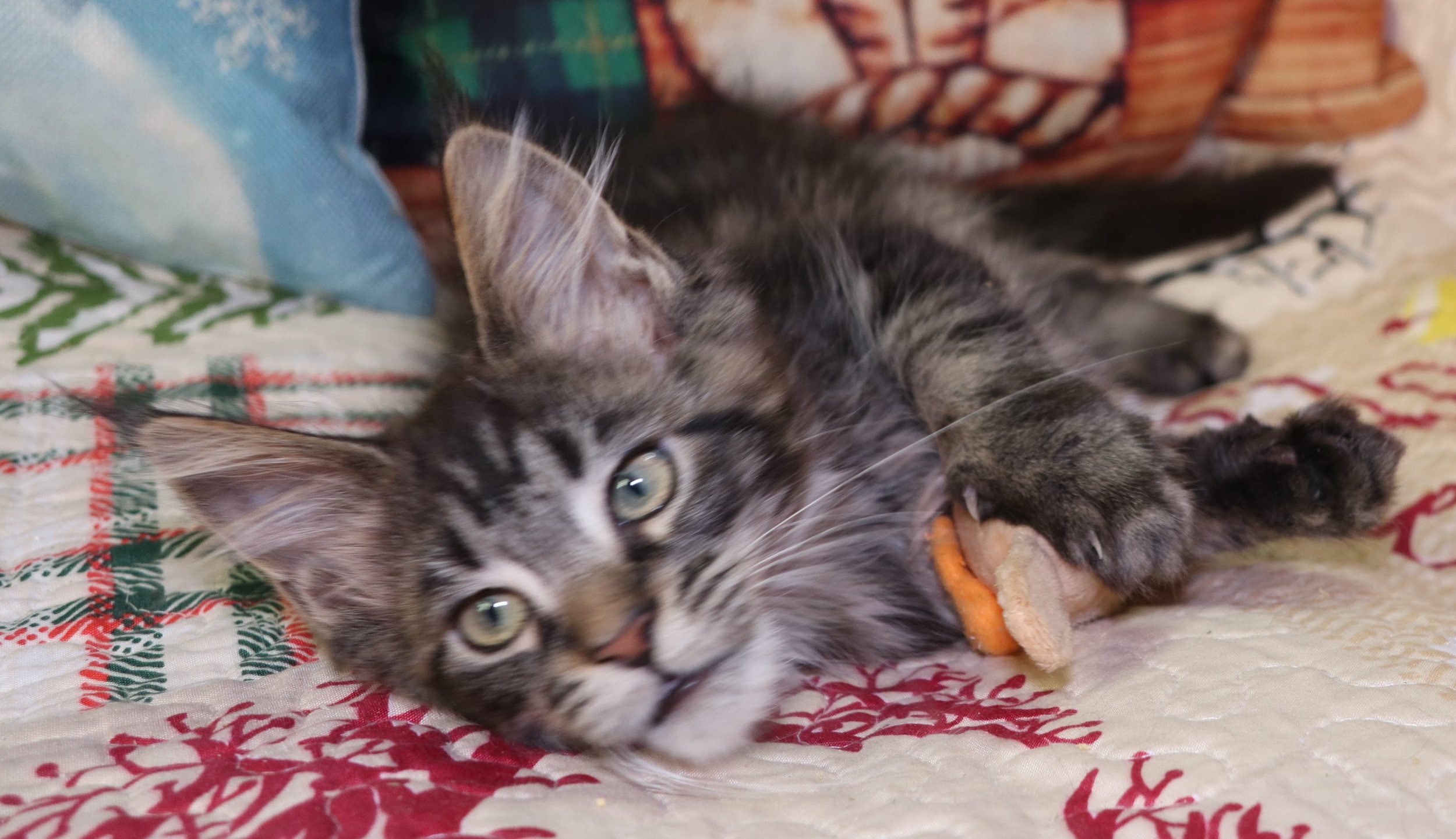 York was born October 2, 2025. His mother is Animali’s Demi and his father is MeowMeadows Prince Archie. He is a classic brown tabby.