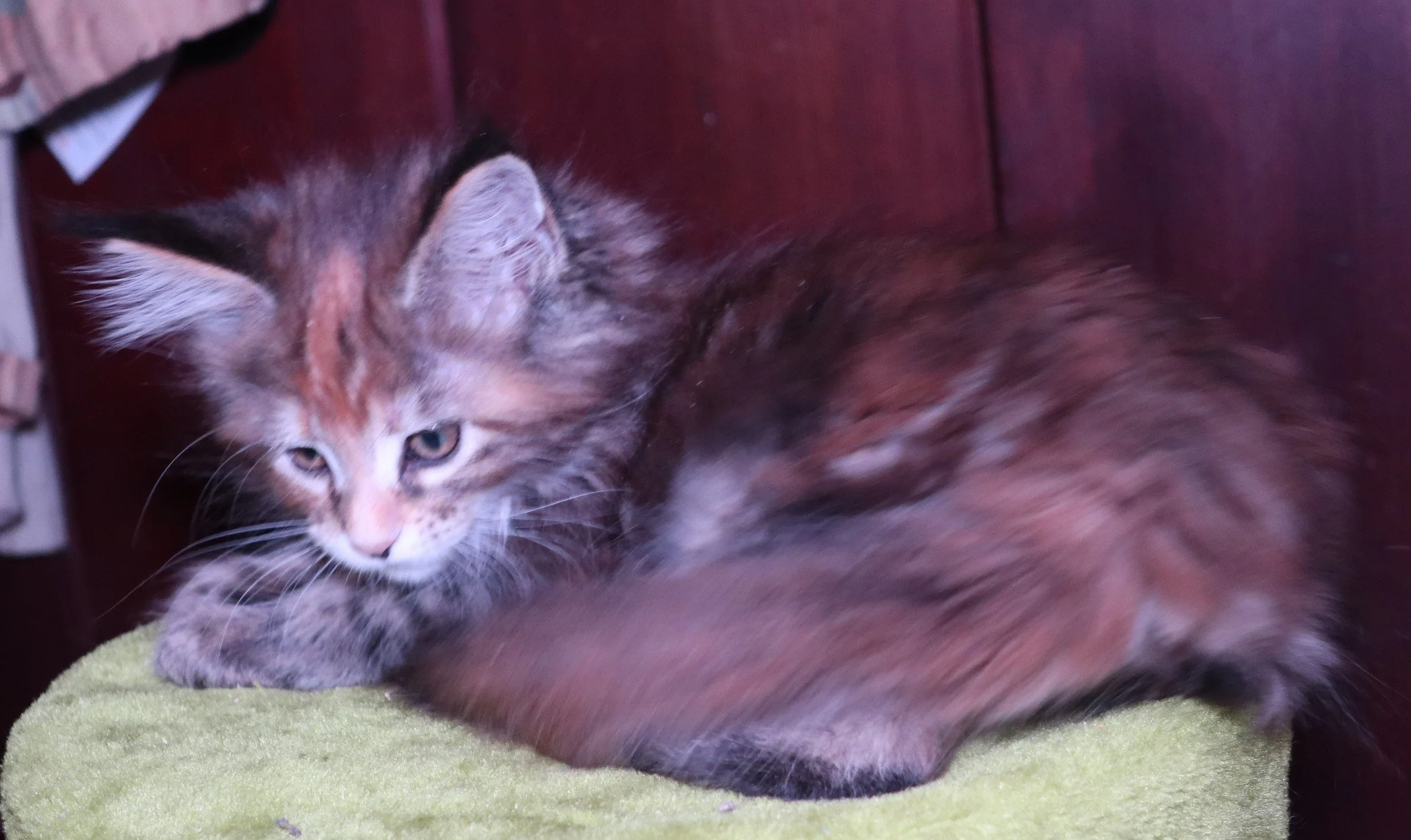Aria was born February 8, 2026. Her mother is Animali’s Queen Elizabeth and her father is MeowMeadows Prince Archie. She is a black tortoise shell. This little girls coat is so beautiful. It is hard to do her justice in a picture.